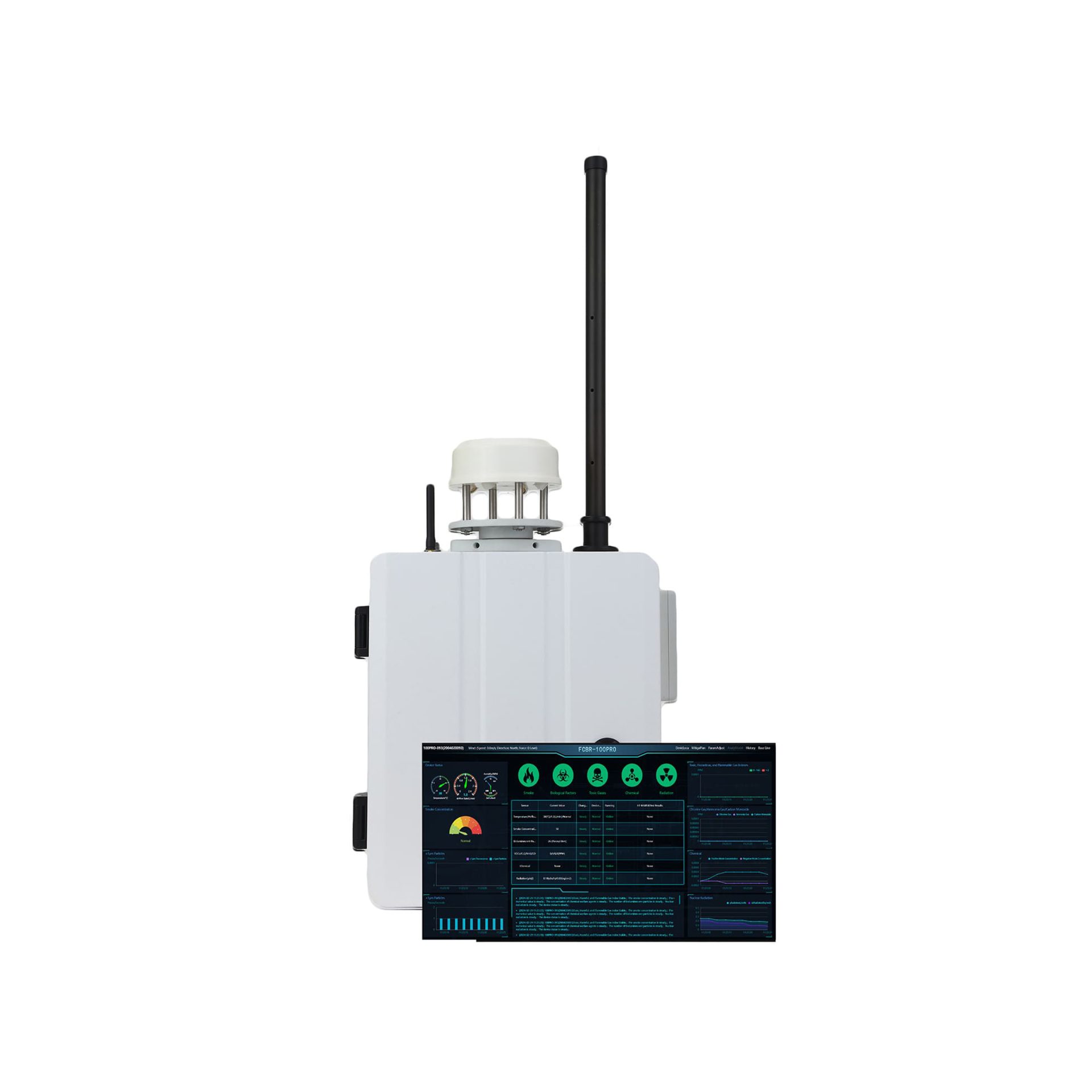 FCBR-100 Pro Sistemi, kimyasal, biyolojik, radyolojik tehditler ile erken yangın dumanını aynı anda izleyen, ayrıca çoklu sensör yapısına sahip gelişmiş bir ortam güvenliği izleme sistemidir.